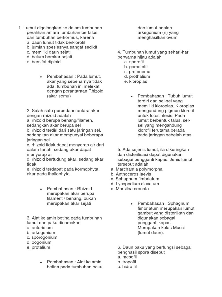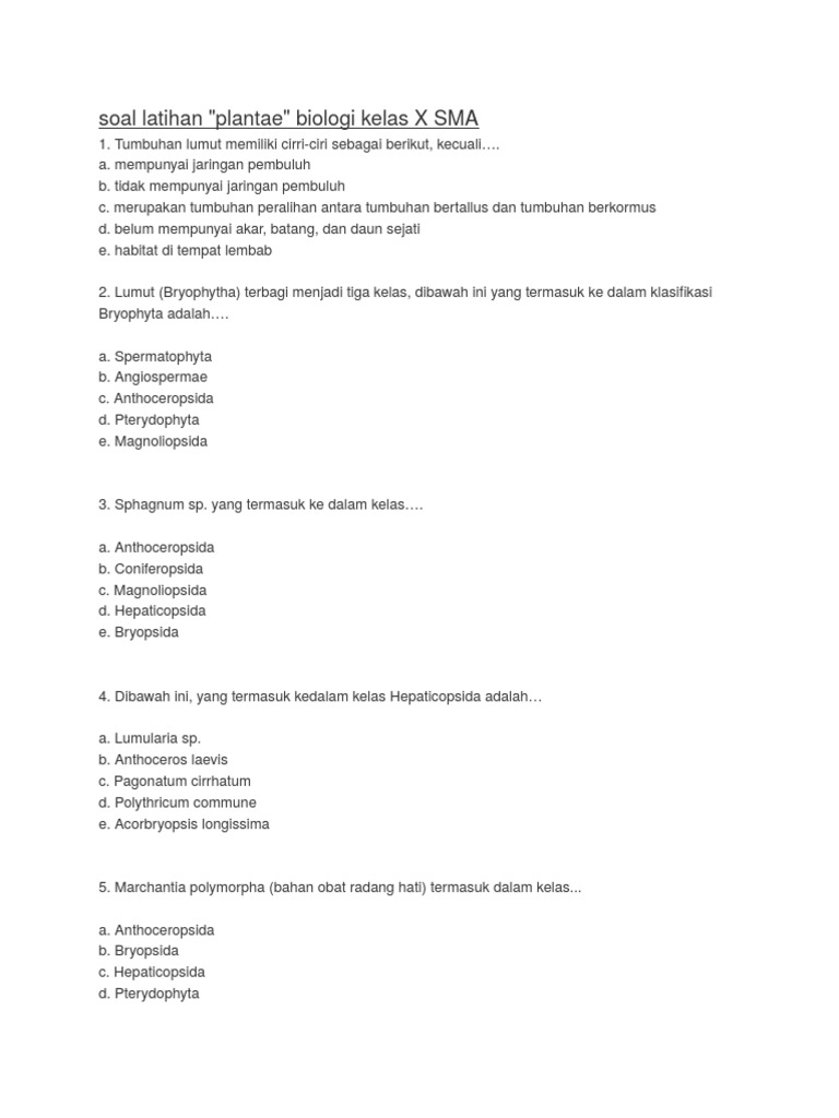 Latihan Ulangan Tengah Semester 2 Docx Docx Document from static.fdokumen.com Ajukan pertanyaan tentang tugas sekolahmu. Berikut ini saya akan membahas tentang kelompok lumut tersebut: Ciri keturunan sporofit lumut adalah sebagai berikut kecuali: Selain itu, lumut juga dilapisi oleh kutikula lilin yang membantu menahan penguapan yang berlebihan dari dalam tubuhnya agar pada saat berada pada lingkungan. Sebaliknya, pada lumut yang berbentuk tumbuhan kecil, semua organ pada cabang dan daunnya yang tidak sejati berisi klorofil. Tumbuhan lumut sering disebut sebagai tumbuhan perintis. Ini terjadi karena tumbuhan lumut berukuran kecil tetapi membentuk koloni yang dapat menjangkau area yang luas. Marchantia polymorpha sebagai obat penyakit hepatitis.